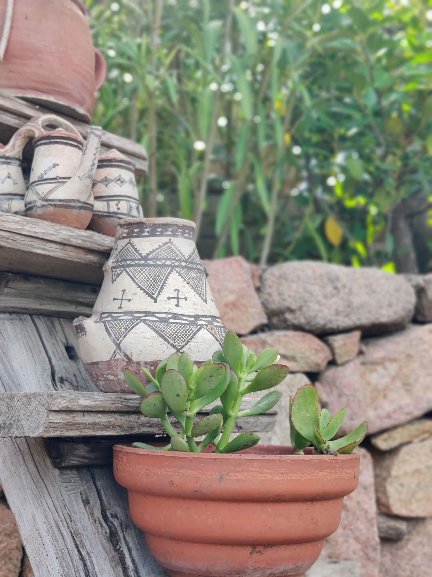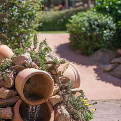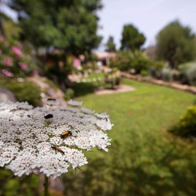 Green, flowering, full of fragrant plants, century-old oaks and olive trees, bougainvillea. In this natural setting, all the scents of our scrubland are added: rosemary, myrtle, strawberry trees, masticum, immortal plants... which will accompany you on your stroll.
