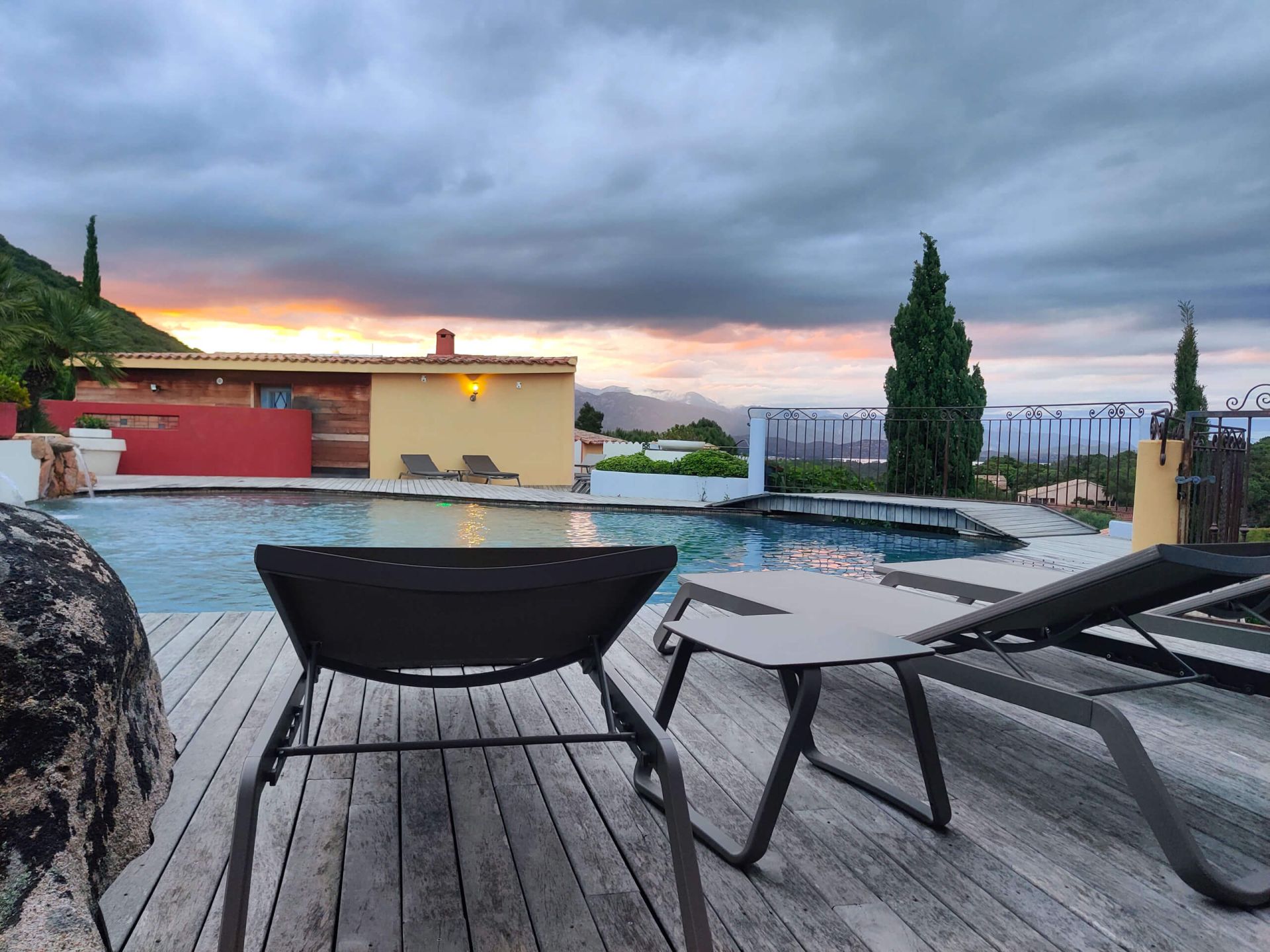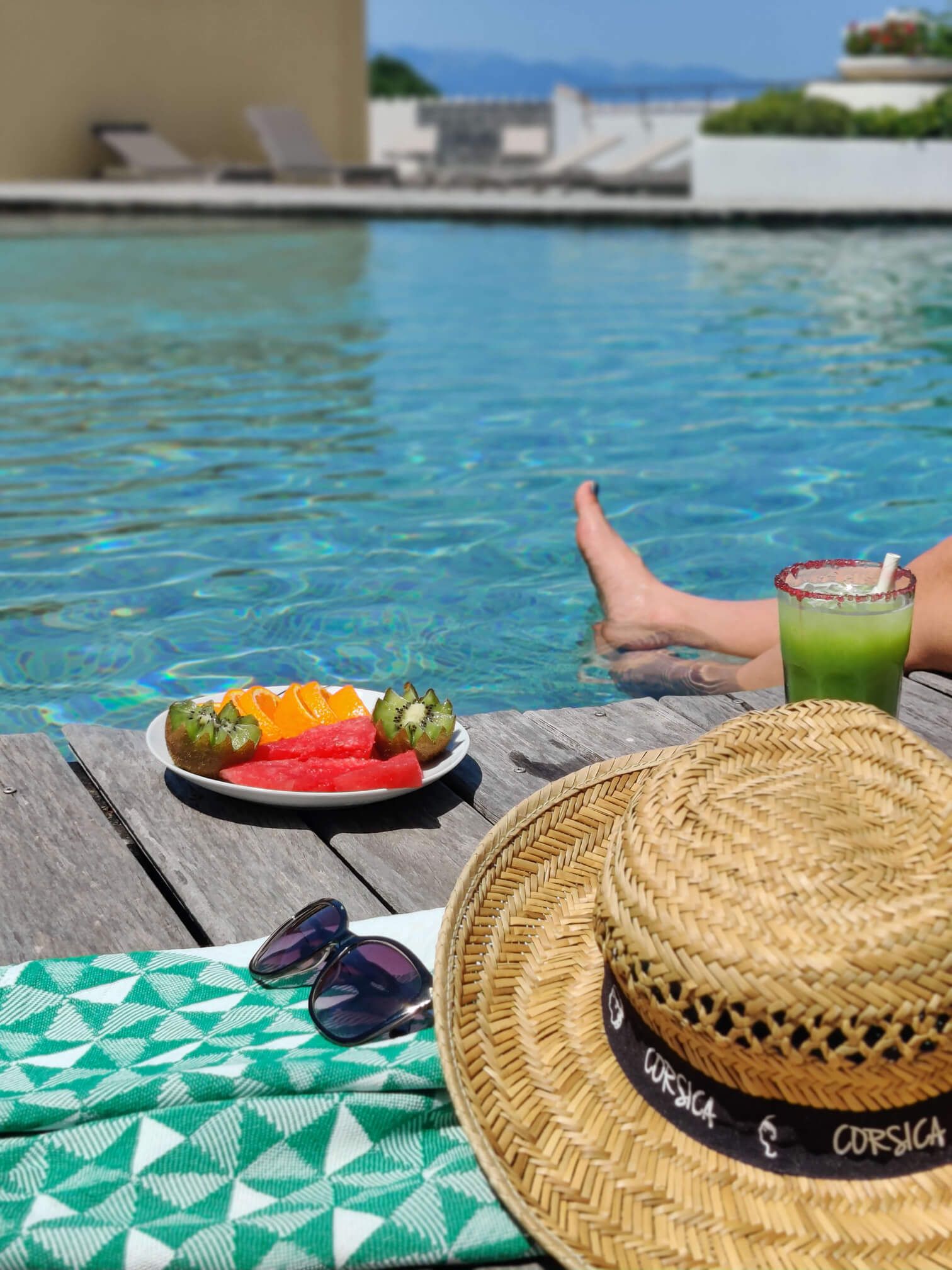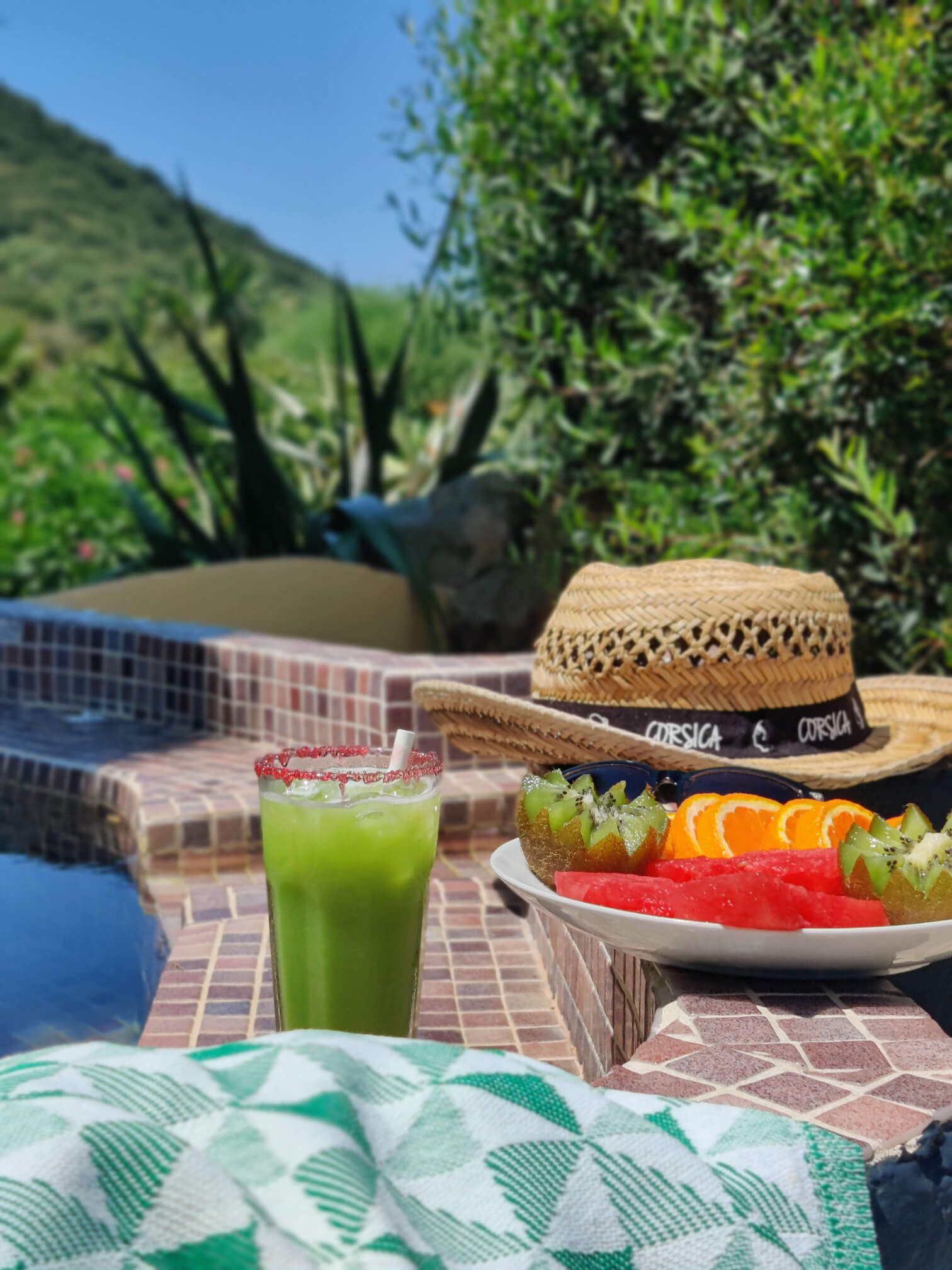 The solarium and hot tubs, with their cascading waters flowing into the pool, invite relaxation, just like the terrace that overlooks the Gulf of Porto-Vecchio and the surrounding mountains. You can enjoy our various cocktails with or without alcohol, as well as our snacks.